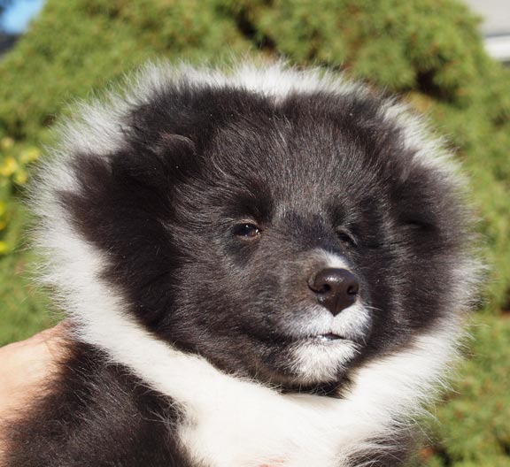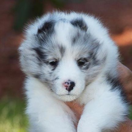 "Inez," Bi-blue girl, born July 21, 2010, pictured below at 6-1/2 weeks old.
